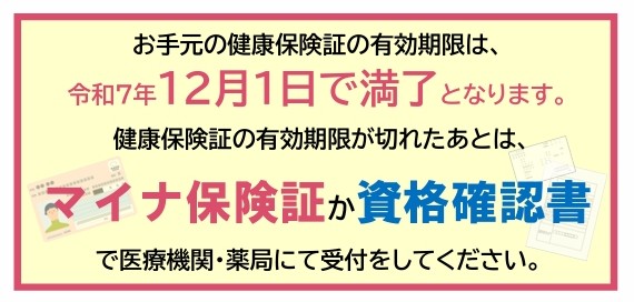 12月2日以降は「マイナ保険証」または「資格確認書」をご提示ください(保険証の有効期限は12月1日まで)
