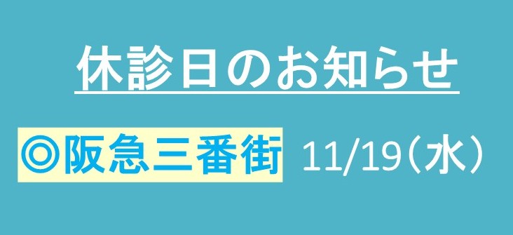 阪急診療所(三番街)は、阪急三番街休館日のため、11/19(水)を休診いたします。